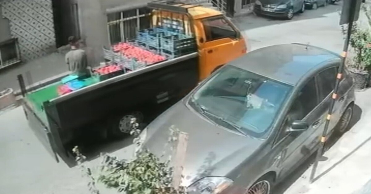 Müşteri kadın aracın çarpması sonucu yere düşerken seyyar satıcı olay yerinden hızla uzaklaştı. Yaşananlar bir iş yerinin güvenlik kamerasına yansıdı. Görüntülere seyyar satıcı ile kadının tartıştığı ve kamyonetin bir anda hareket ederek kadının yola savrulduğu anlar yansıdı.