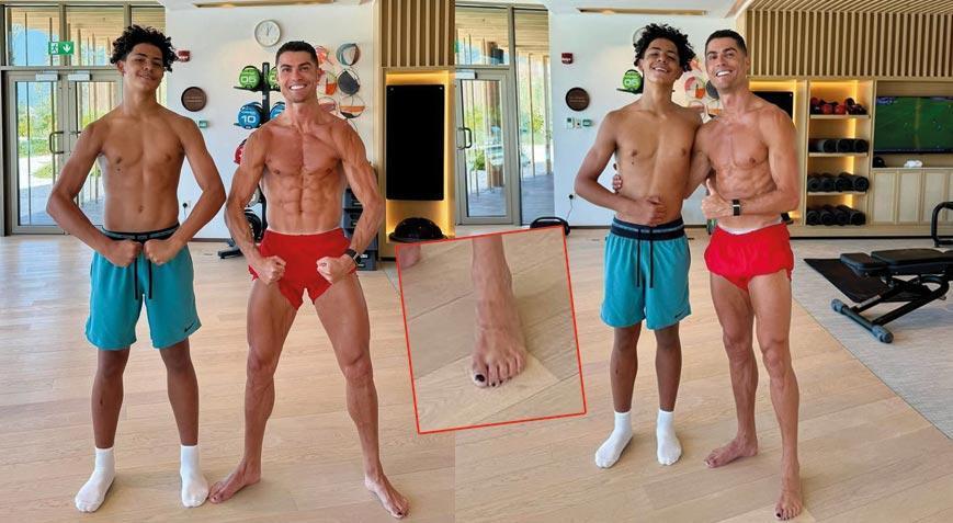 Fotoğrafta iki unsur dikkati çekti. Biri; baba – oğulun vücut geliştirme sporu yapmaları. Fotoğrafta, futbol efsanesinin yeşil sahalardaki başarısını vücut geliştirmede de gösterdiği görülüyor. Ronaldo’nun karın kasları öyle gelişmiş ki tam bir baklava görünümüne kavuşmuş. Fotoğrafta dikkat çeken diğer unsur ise Portekizli ünlü futbolcunun ayak tırnaklarına siyah oje sürmüş olmasıydı. 40 yaşındaki Ronaldo’nun başka fotoğrafları incelendiğinde de ayak tırnaklarına daima siyah oje sürdüğü ortaya çıktı.