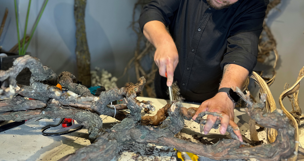 “Çıtayı yükselterek, geri dönüşüm malzemelerini kullanmaya başladım. Doğadan kökler buluyoruz. Herhangi bir gerçek ağacı, canlı ağacı kesmiyoruz kesinlikle. Mesela yolda yürürken bir ağaç görüyoruz, hemen onun köklerine operasyon yapıyoruz. Köklerini çıkartıyoruz, işliyoruz. İlmek ilmek. oynuyoruz, temizliyoruz, vernikliyoruz. Ondan sonra tüketicilerimize sunuyoruz”